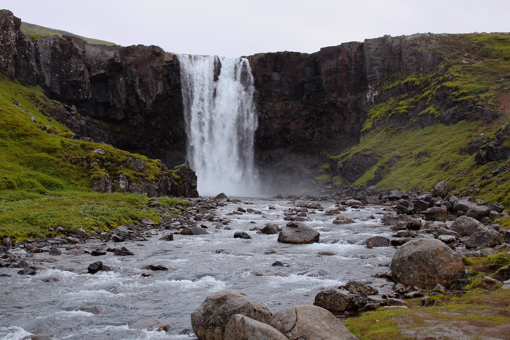 Nuestra primera parada es Rjúkandi, una elegante cascada escalonada situada en el valle de Jökuldalur. Un entorno tranquilo y natural, ideal para pasear brevemente, disfrutar del paisaje y tomar magníficas fotografías.