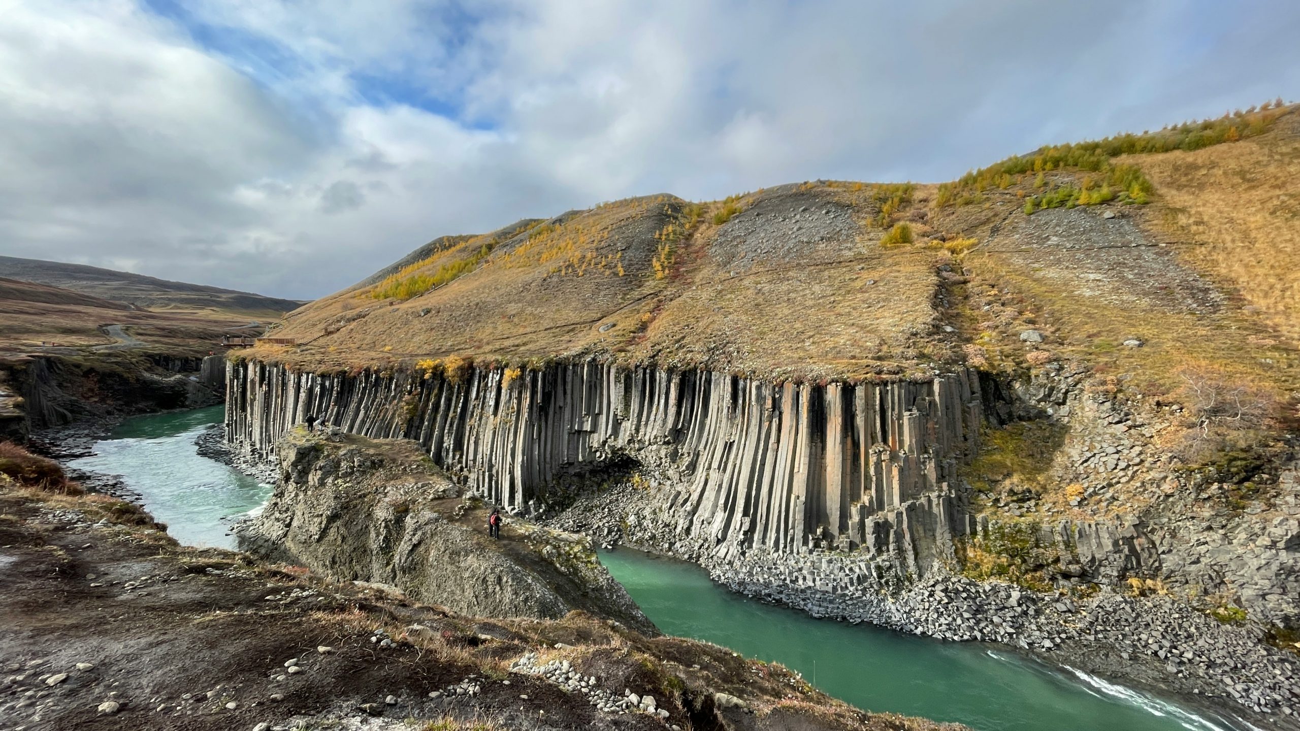 Continuamos hacia uno de los grandes tesoros naturales del este de Islandia: el Cañón de Stuðlagil. Este impresionante cañón destaca por sus columnas de basalto perfectamente formadas y por las aguas glaciares de intensos tonos turquesa, creando uno de los paisajes más fotogénicos de la isla.